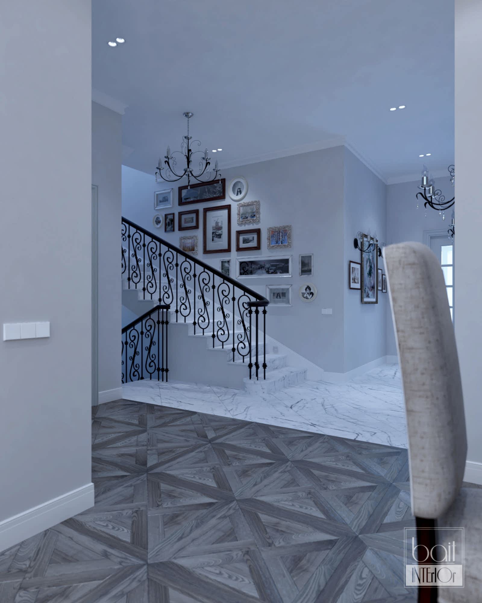 Один из редких случаев, когда мы подключились к созданию интерьера дома на этапе фундамента. Это позволило Pin-Up и безболезненно внести дополнения и корректировки в уже существующий проект дома. Мы предложили увеличить гостиную за счет уменьшения кухни, немного переделали ванные. Где-то чуть увеличили, какие-то чуть уменьшили для комфортного использования и наиболее рационального расположения сантехнических приборов. Так же не смогли пройти мимо возможности сделать нормальные окна в ванных комнатах, а не “дырки в стенах” как было в первоначальном проекте архитектора.
