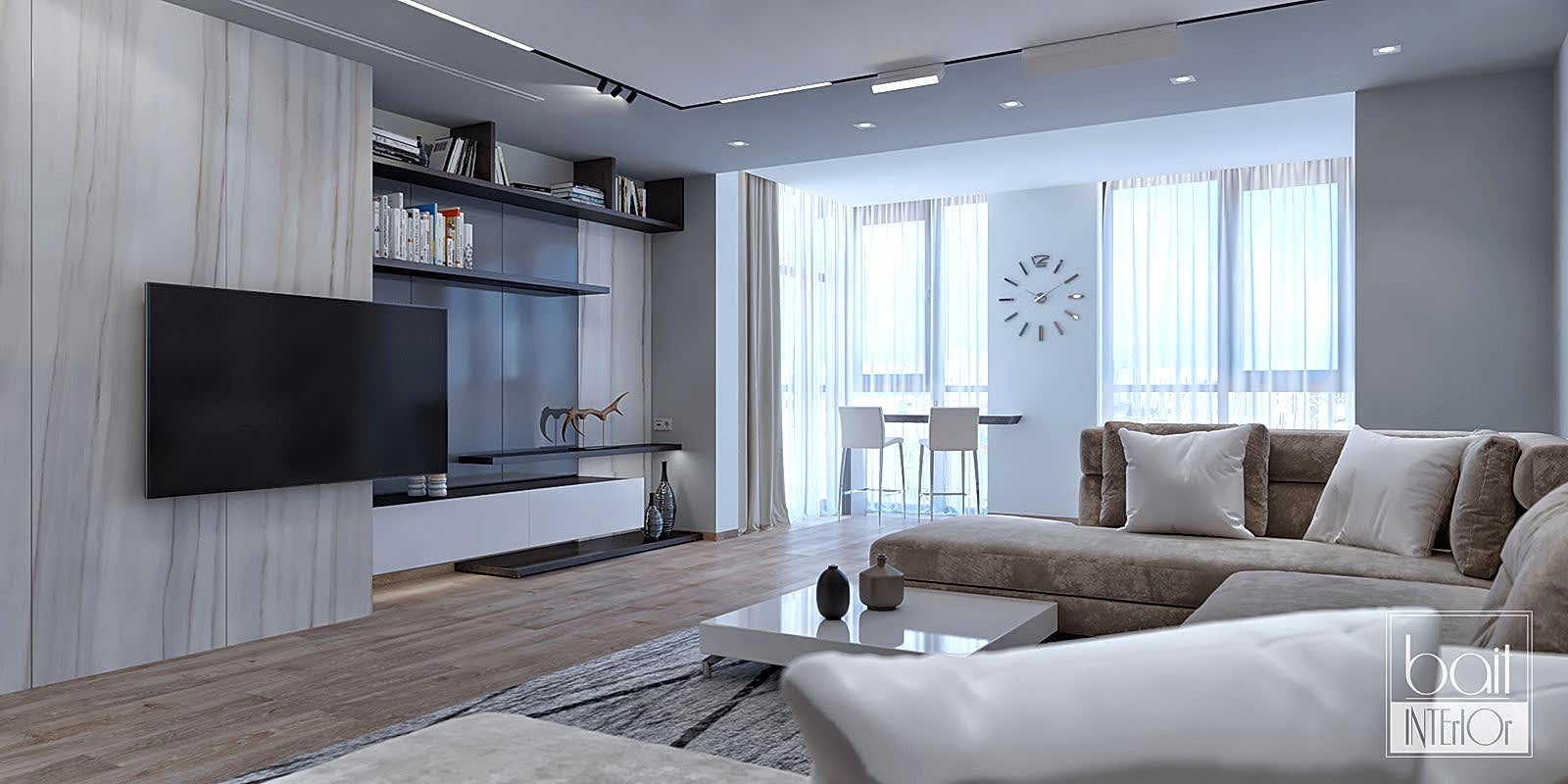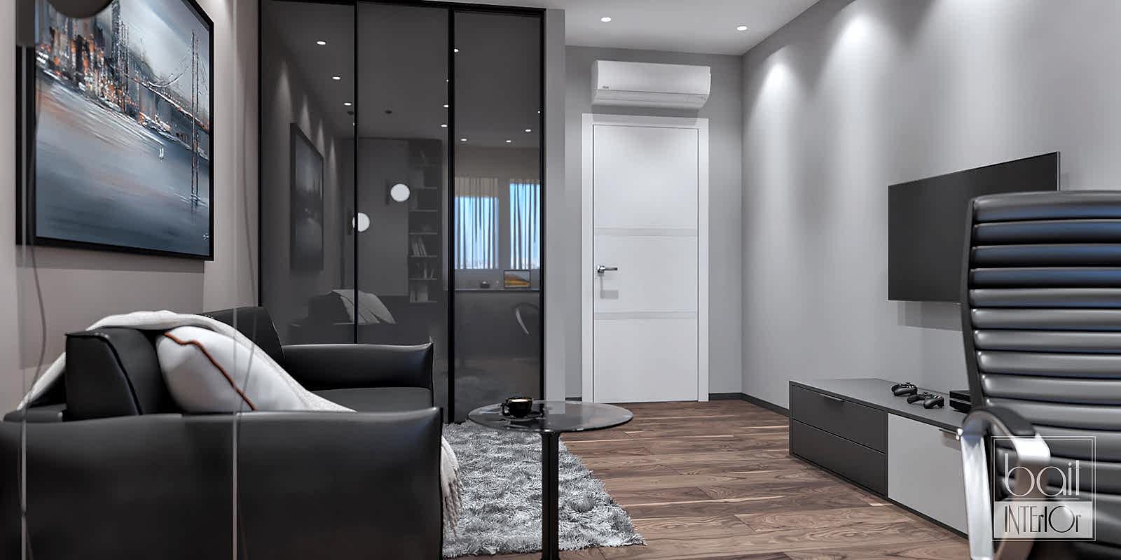 Проект интерьера квартиры выполнен в стиле минимализм. Хозяин будущего жилья - современный молодой человек. Мы постарались разделить всю квартиру на несколько Pin-Up Здесь легко можно будет организовывать вечеринки и проводить время за уединенным семейным ужином.