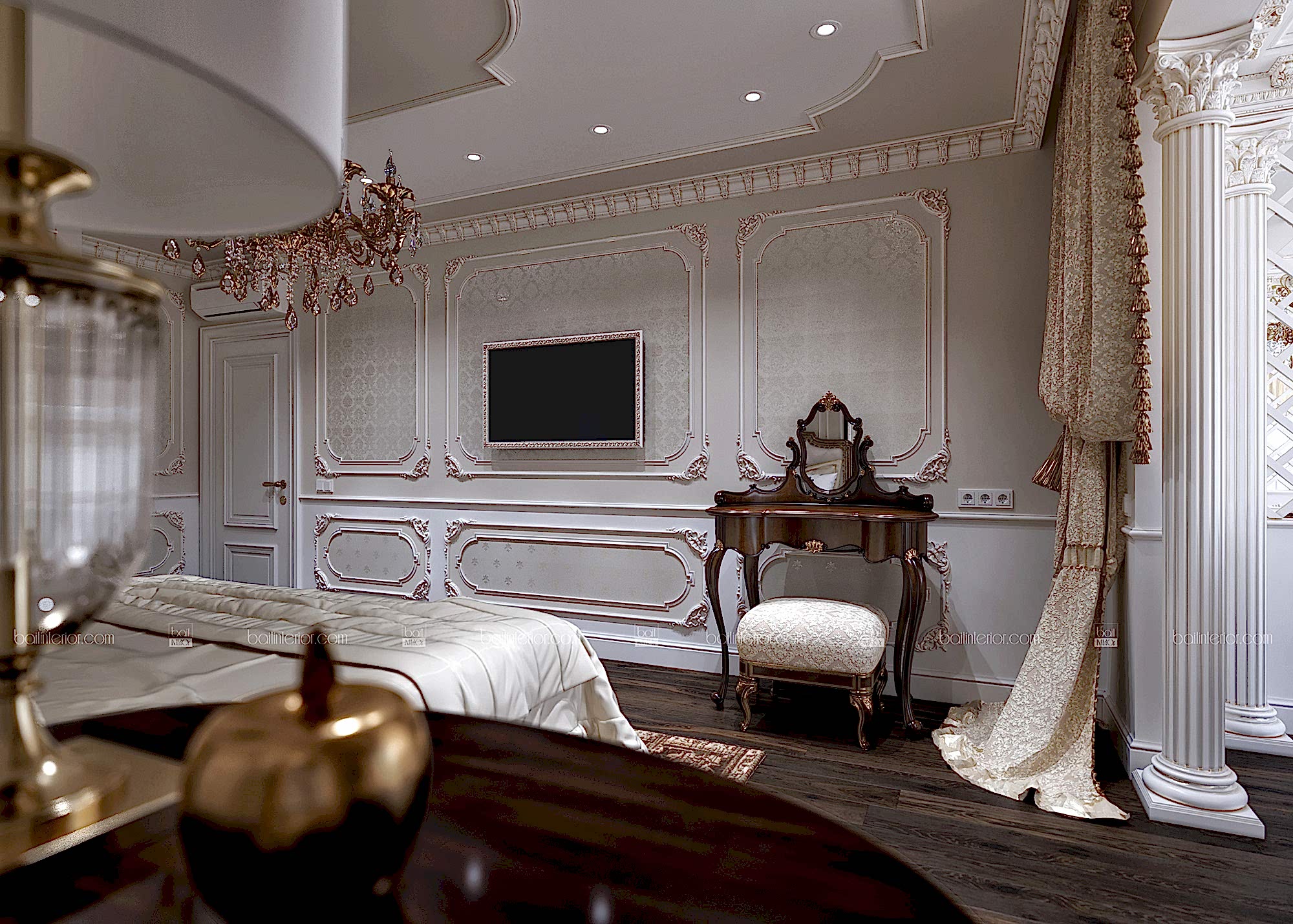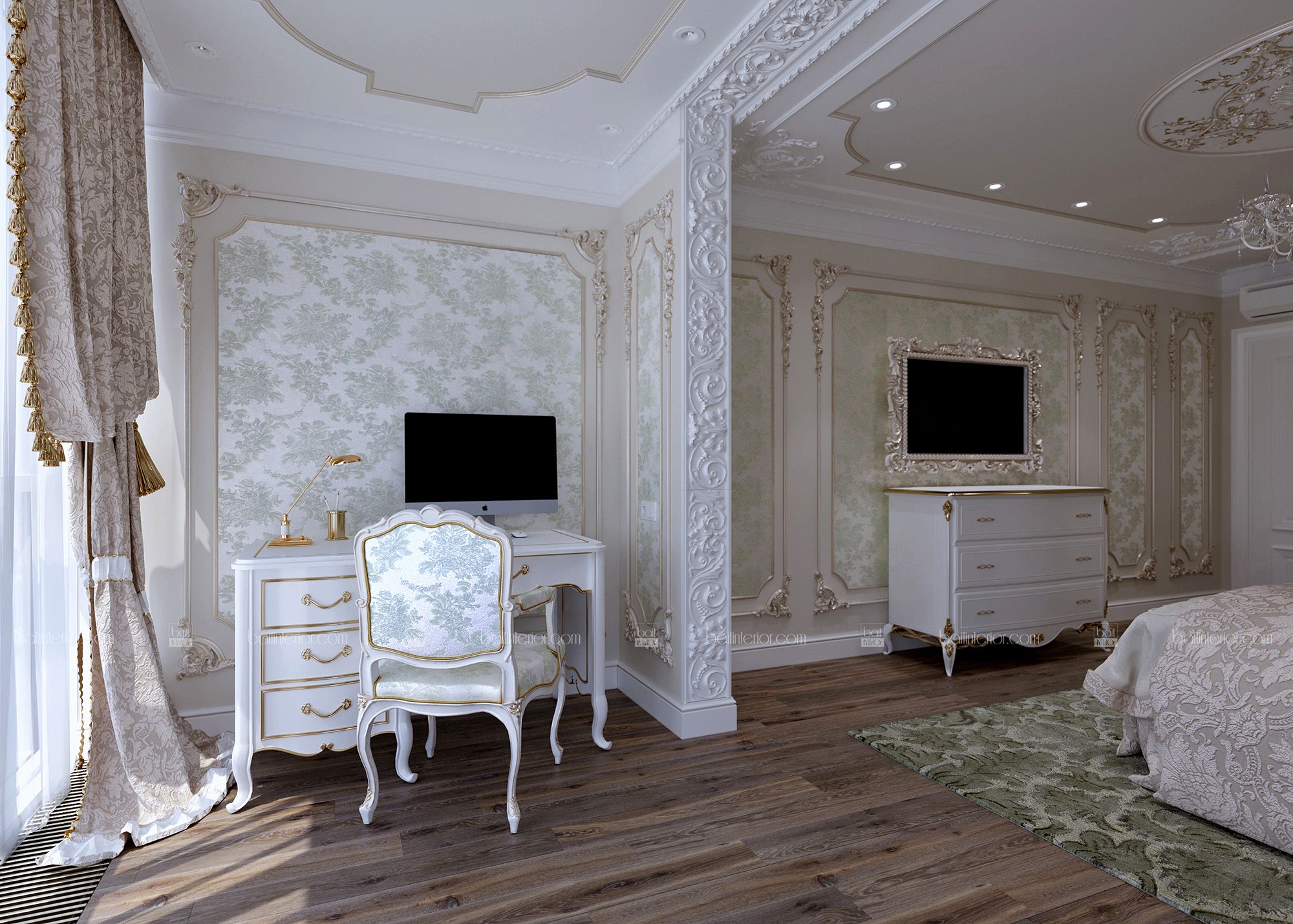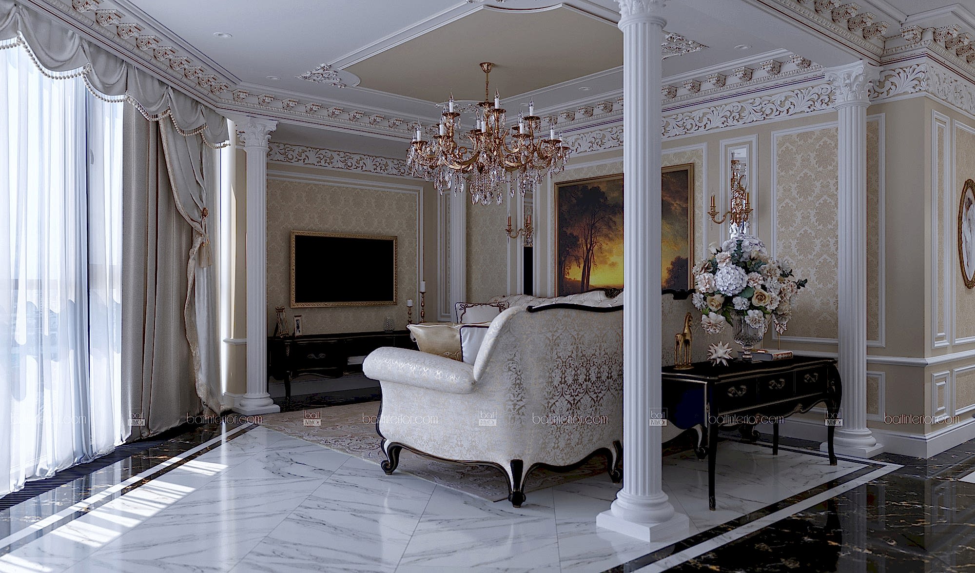 Знакомьтесь, перед Вами, пожалуй, самый яркий представитель своего стиля в нашем портфолио в настоящий момент. Мы сочетали в проекте наиболее интересные приёмы классических дворцовых интерьеров, учитывая требования современности. Ведь интерьер должен быть не только Pin-Up но и удобным! В отделке мы применили гипсовую лепнину, изготовленную по индивидуальным эскизам, окрашивание и тканевые обои из шёлка. Иными словами, наша студия воплотила в данной квартире всю роскошь утончённого классического стиля, опираясь на возможности 21 века, но отдавая дань достижениям прошлого в этом направлении. Всё это необходимо было учесть ради удобства клиента, так как изменились способы изготовления и монтажа некоторых элементов.
