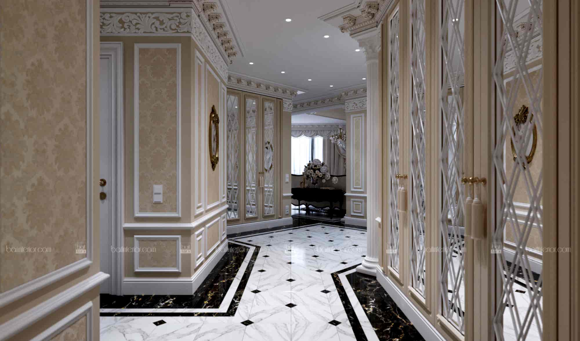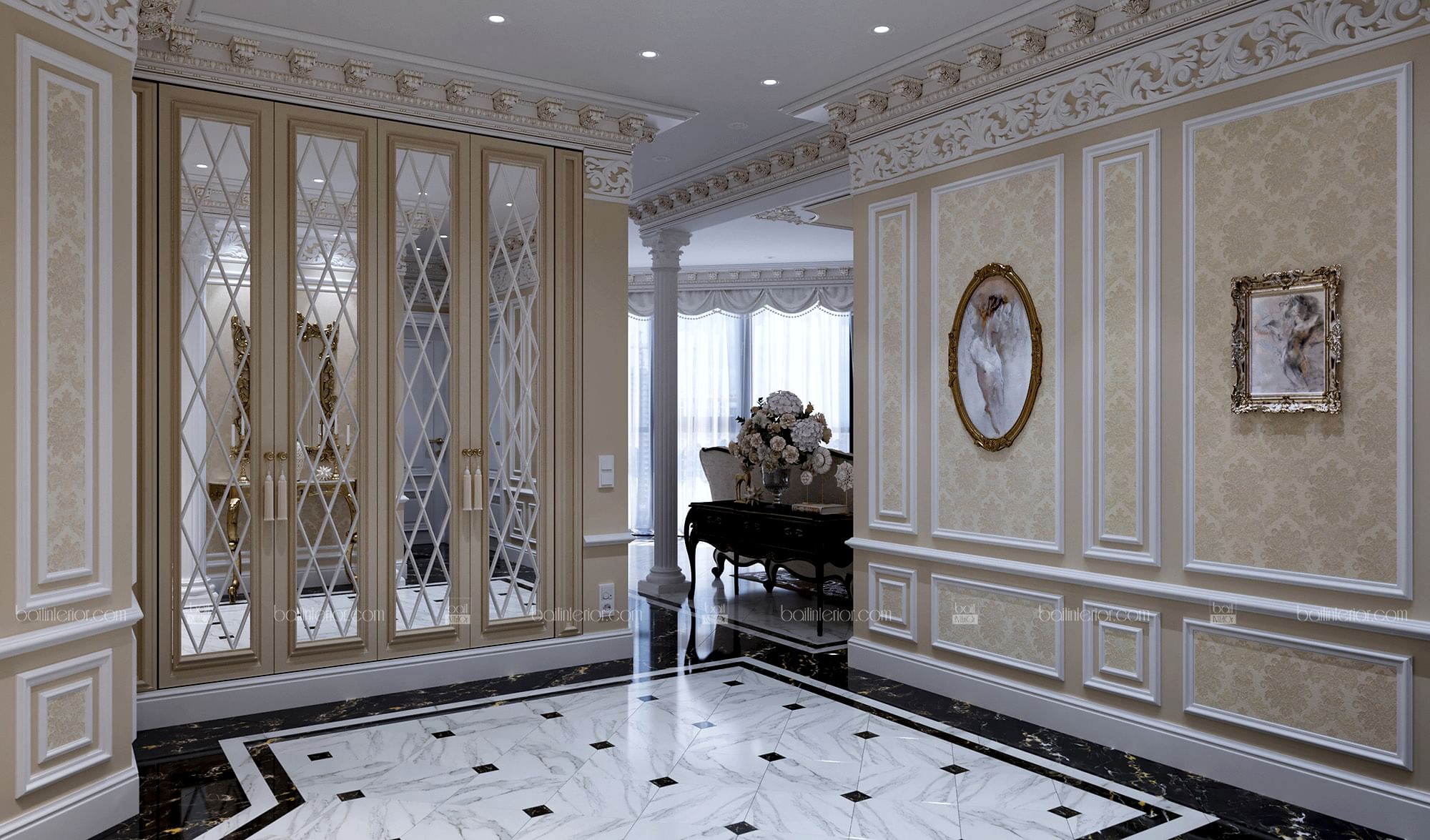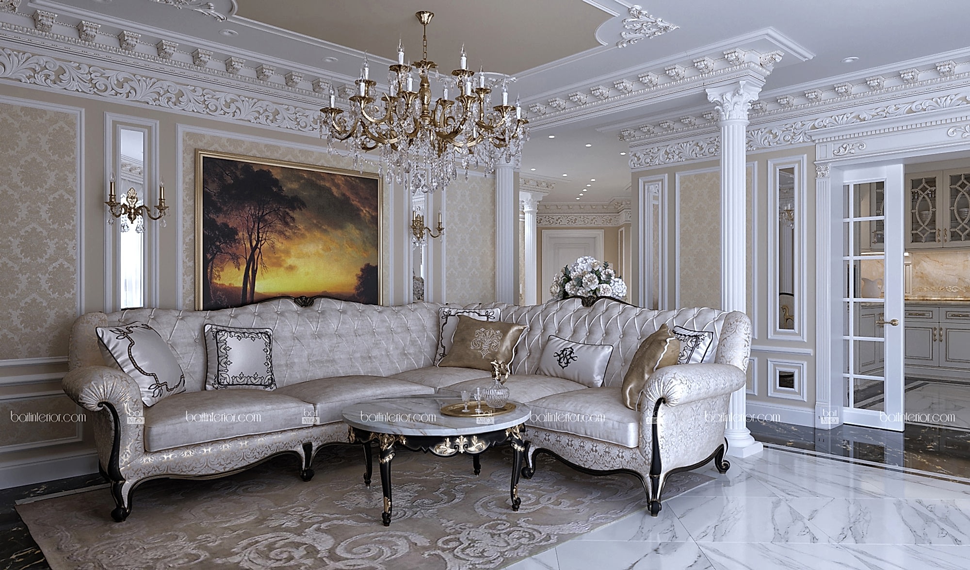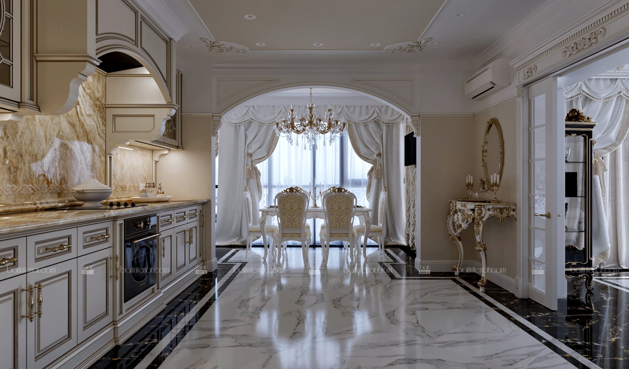 Знакомьтесь, перед Вами, пожалуй, самый яркий представитель своего стиля в нашем портфолио в настоящий момент. Мы сочетали в проекте наиболее интересные приёмы классических дворцовых интерьеров, учитывая требования современности. Ведь интерьер должен быть не только Pin-Up но и удобным! В отделке мы применили гипсовую лепнину, изготовленную по индивидуальным эскизам, окрашивание и тканевые обои из шёлка. Иными словами, наша студия воплотила в данной квартире всю роскошь утончённого классического стиля, опираясь на возможности 21 века, но отдавая дань достижениям прошлого в этом направлении. Всё это необходимо было учесть ради удобства клиента, так как изменились способы изготовления и монтажа некоторых элементов.