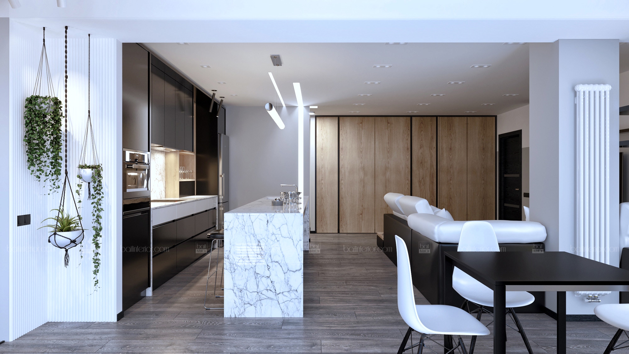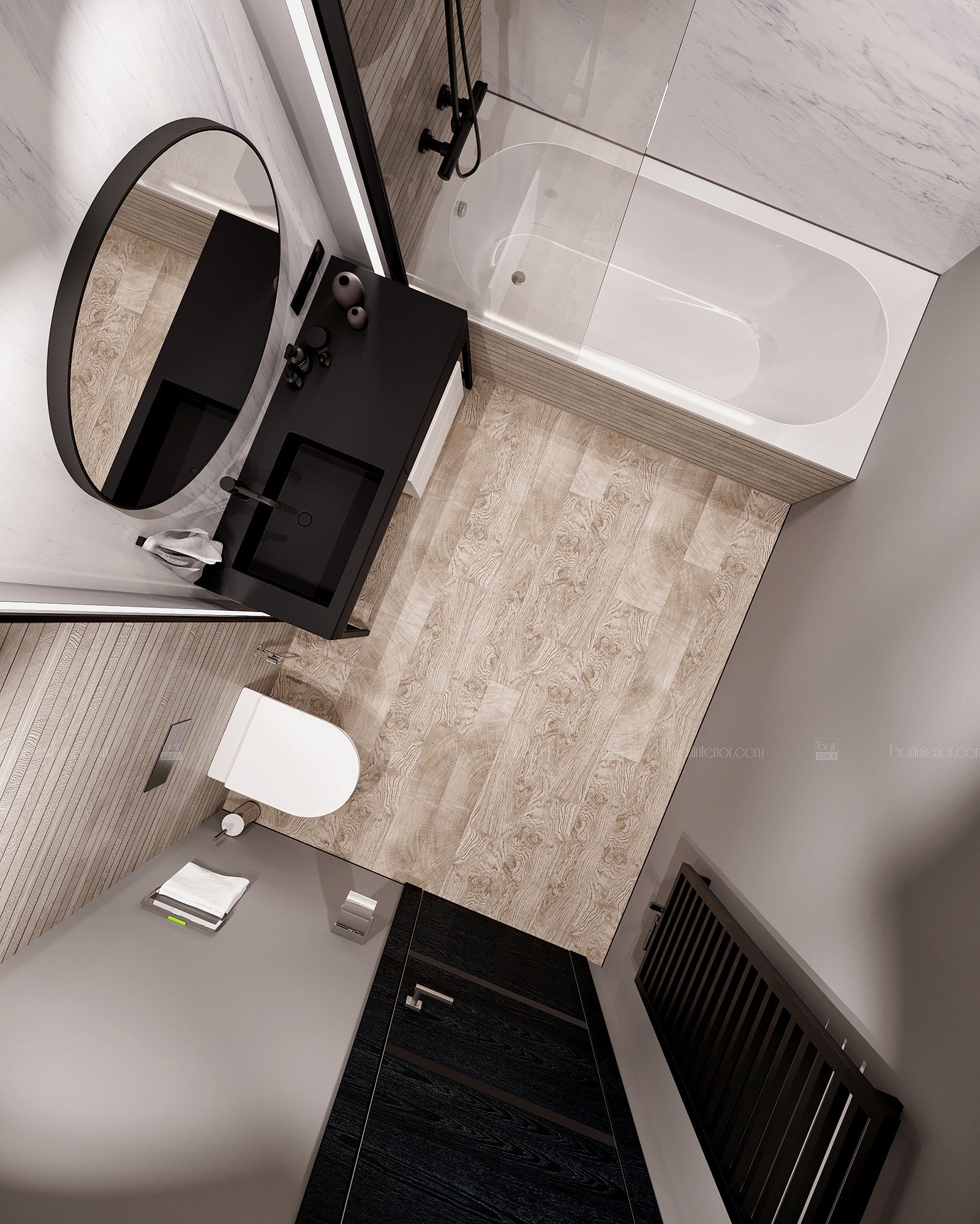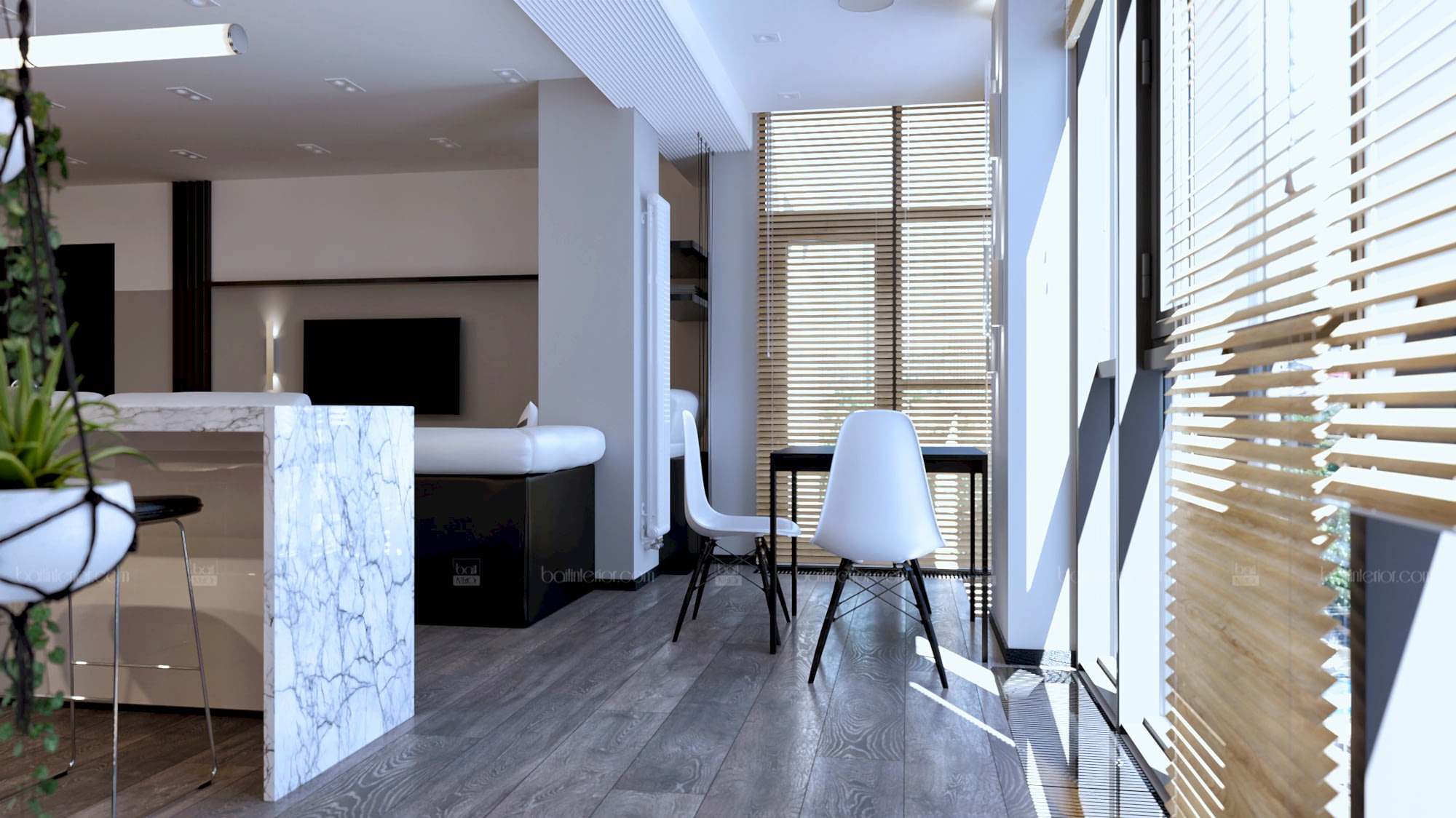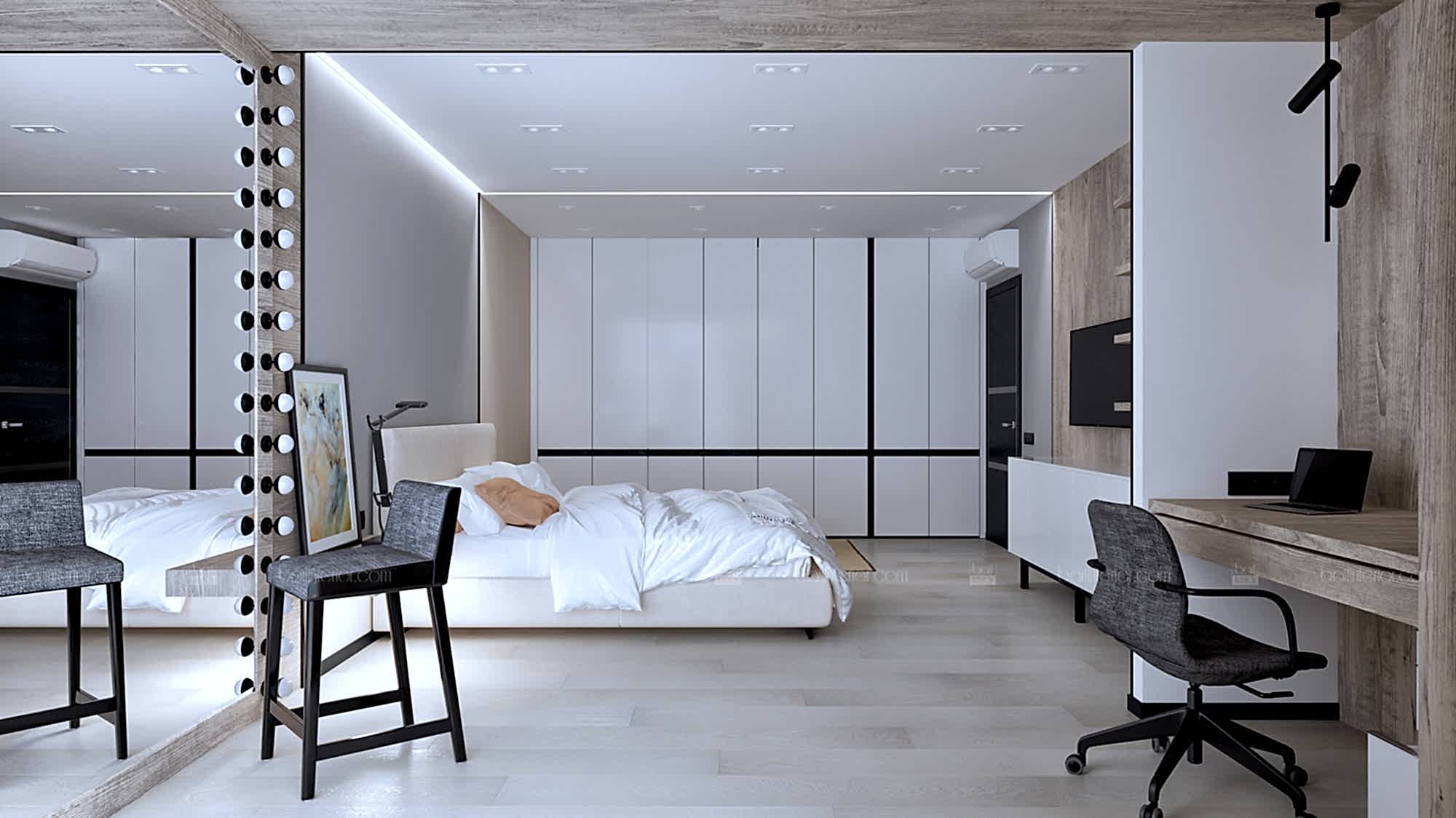 Проект этой квартиры создавался специально для молодых людей - студентов. Pin-Up для студента конечно же имеет свои особенности. Это время экспериментов и становления личных амбиций. При проектировании мы учли все пожелания, характер и образ жизни молодых людей. В первую очередь необходимо было исправить ошибки планировки от предыдущих владельцев. Мы расширили ванную, убрали узкие и нефункциональные коридоры, организовали обособленную техническую зону, в которой удобно разместили постирочную. Предусмотрели небольшой остекленный балкон для курения. В результате получился комфортный, оригинальный, индивидуальный, рациональный и функциональный дизайн. Сквозь стиль всех комнат проходит идея графичных черных линий и деления стен на разные оттенки- эти приемы, как нельзя лучше “омолаживают” и осовременивают интерьер.