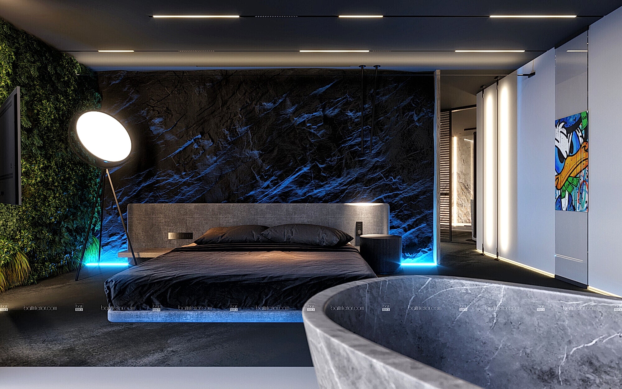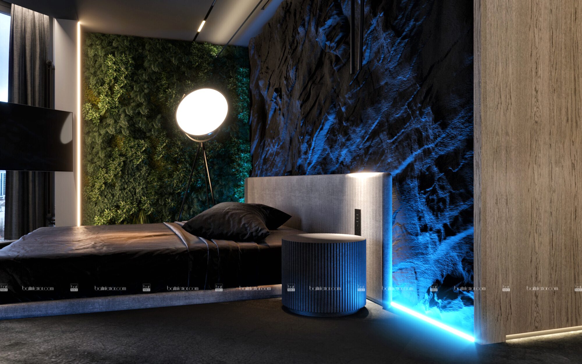 Интерьер для молодого парня, который ценит свою независимость и стиль. Такой интерьер создает атмосферу современного Pin-Up пространства, где каждая деталь продумана и несет свой смысл. Это место, где брутальность встречается с элегантностью, а минимализм обретает характер.