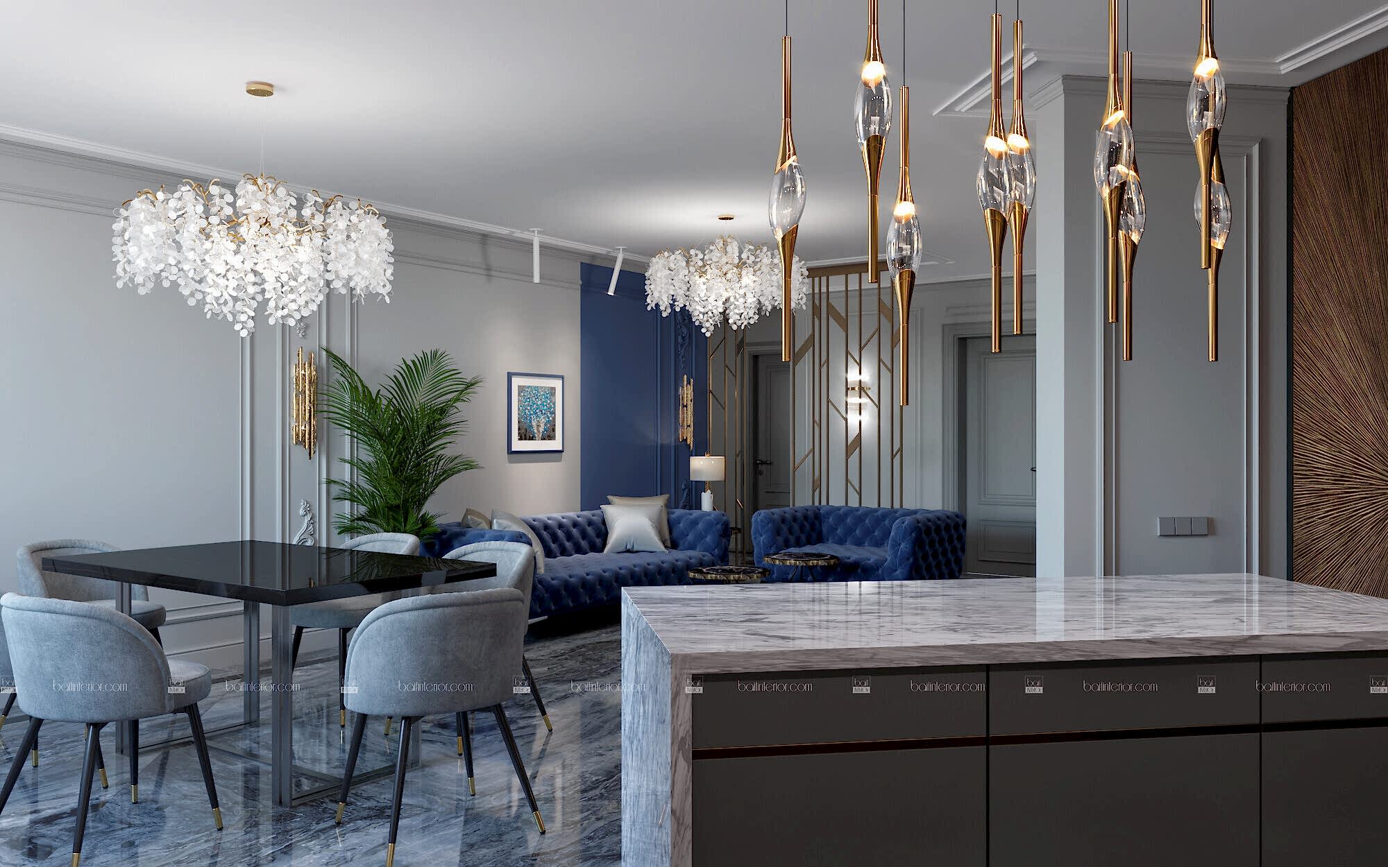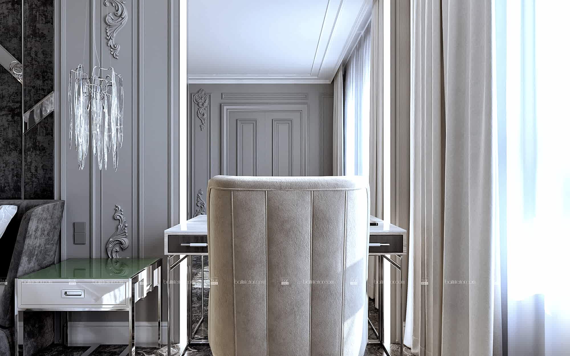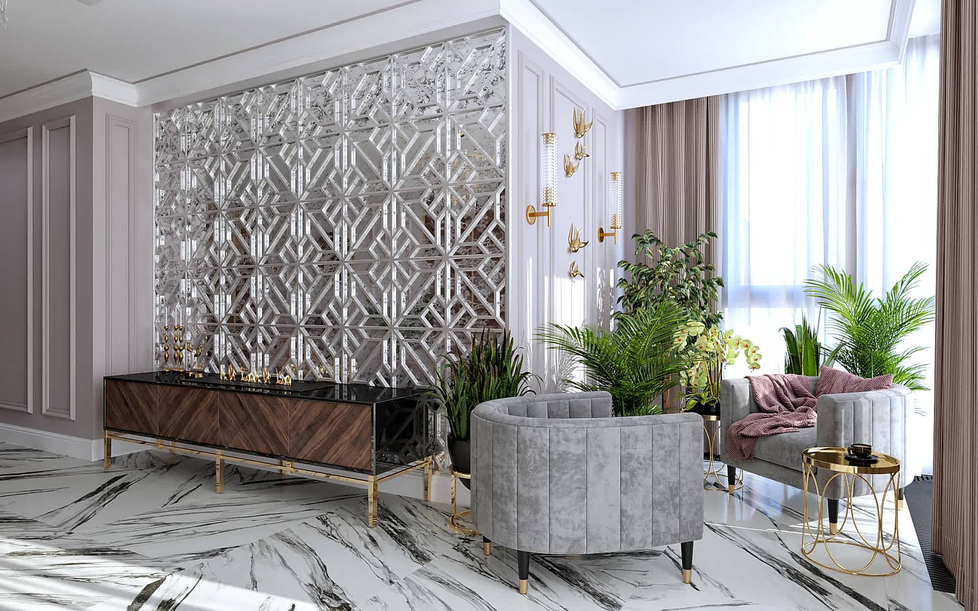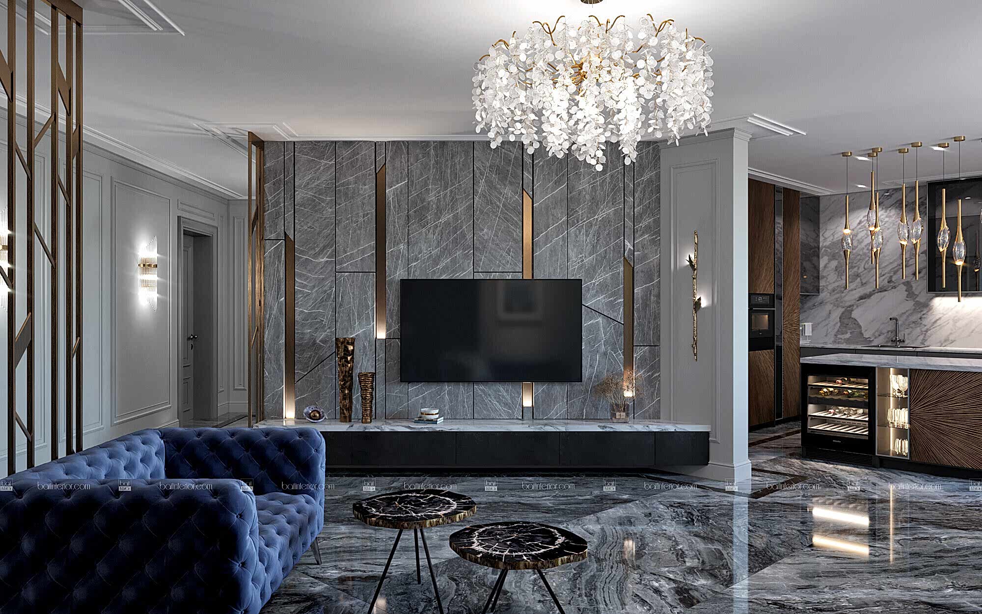 Задачей от заказчиков при создании этого интерьера было создание квартиры, которая бы воплощала роскошь и стиль, сравнимый с “Bently”. Им особенно по вкусу пришлась серая гамма, которая стала основой для всего дизайна. Крупноформатный глянцевый керамогранит, натуральная латунь и изящная гипсовая лепнина создали основной образ помещений, придавая им элегантность и утонченность. А серый цвет стал Pin-Up фоном для латунных элементов и предметов мебели, добавляя интерьеру изысканности и глубины.